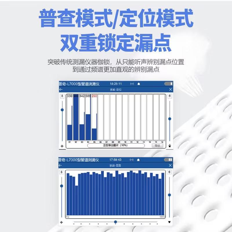 普奇PQWT-L4000 是湖南普奇地质勘探设备研究院、湖南普奇水环境研究院联合自主研发的最新一代智能管道漏水检测仪,专为家庭/外网管道管道漏水设计。普奇L4000 管道漏水检测仪通过传感器将漏水声音信号进行采集,采集后的信号通过主机处理,以可视化频谱及信号柱的方式显示在主机屏幕上,同时声音也会通过主机输出到耳机,通过“听”、“看”两种方式结合,分析判断漏水点。“普查模式”+“定位模式”双重锁定漏水点,能够精准、快速、有效的解决各类家庭管道的漏水问题。